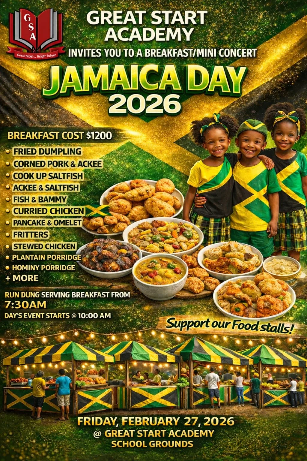 Students and staff at Great Start Academy celebrated Jamaica Day on February 27th with lively performances, cultural displays, and exciting stalls throughout the campus. The day ended on a high note with the announcement of the Class Rally winners for each grade, adding even more excitement to an already memorable celebration.